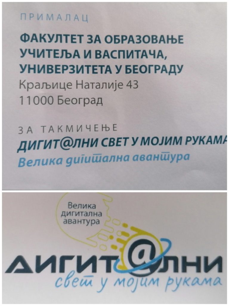 Ученици четвртог разреда наше школе учествовали су на такмичењу „Дигит@лни свет у мојим рукама – Велика дигитална авантураˮ које је организовано у циљу развоја дигиталних вештина и дигиталне писмености. Током рада ученици су показали изузетну тимску сарадњу и креативност, што представља важан корак ка успеху. Такмичење је реализовано у организацији Друштва за информатику Србије, Факултета за образовање учитеља и васпитача Универзитета у Београду и Центра савремених вештина и технологија „Фибоначиˮ из Београда.