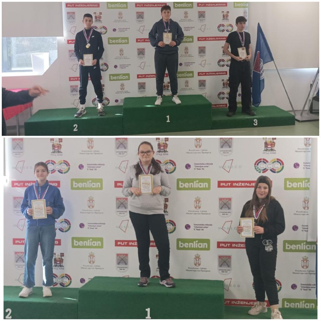 Ученици наше школе бриљирали су на овогодишњем градском и окружном такмичењу у стрељаштву. Девојчице су екипно биле прве у категорији пионирки, а пехаром и златним медаљама окитила се и мушка екипа у својој категорији. Дупла круна пионирки и пионира обезбедила им је пласман на републичко такмичење. У појединачној конкуренцији ученик осмог разреда Вељко Јовић заузео је друго место, док је његова другарица Вера Симоновић, ученица шестог разреда, била трећа у појединачној категорији девојчица. Ученици су на такмичењу показали изузетну упорност, борбеност и такмичарски дух, па им овом приликом званично честитамо и све их похваљујемо: