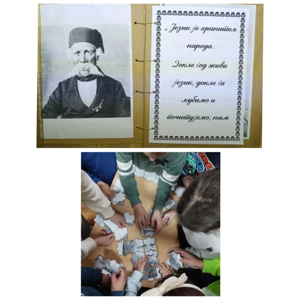 Новембар – месец у знаку Вука Караџића. Ученици млађих разреда ове школске године су решили да не обележавају само дан рођења творца наше азбуке, већ да цео месец новембар посвете његовом реформаторском раду. С тим у вези ученици су на часовима украшавали слова нашег дивног писма, цртали Вуков портрет, изучавали народне песме, бајке и кратке умотворине. Разговарало се и о Вуковој борби за српски језик и правопис. На крају месеца су учитељице Љиљана Дејановић и Селена Младеновић приредиле посебну пустоловину за своје ученике трећег разреда. Одржани су угледни часови српског језика и математике у виду авантуре проналаска књиге „Тајна Вука Караџићаˮ. Кроз интегративну наставу ученици су решавали различите задатке, проналазили по учионици упутства за рад и скривене делове кључа. Уз игру, учење и тимски рад наши трећаци су на крају открили посебну књигу са најважнијом поруку коју нам је Вук оставио: „Језик је хранитељ народа!ˮ
